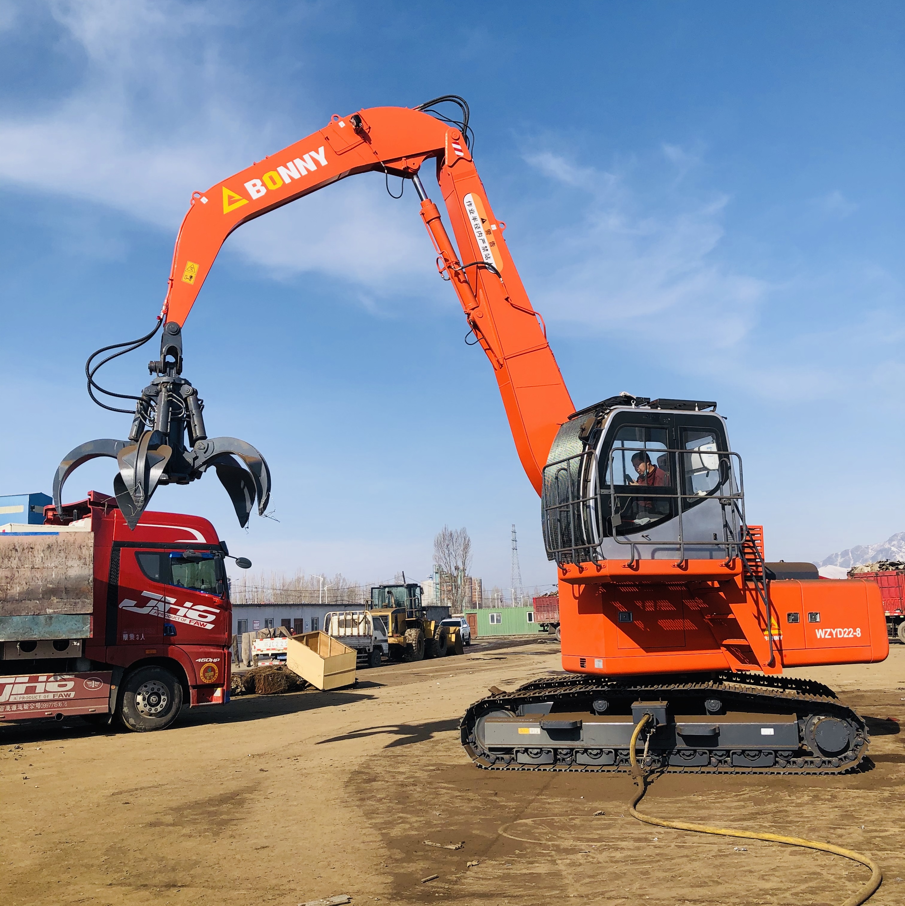 ●可以選擇配備多種工作裝置(抓斗)實(shí)現(xiàn)廢鋼、圓木、木屑、原煤、草料等多種物料的抓取、裝卸